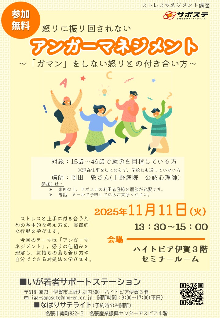 無料開催|就労を目指す15~49歳向け|アンガーマネジメント