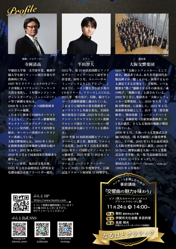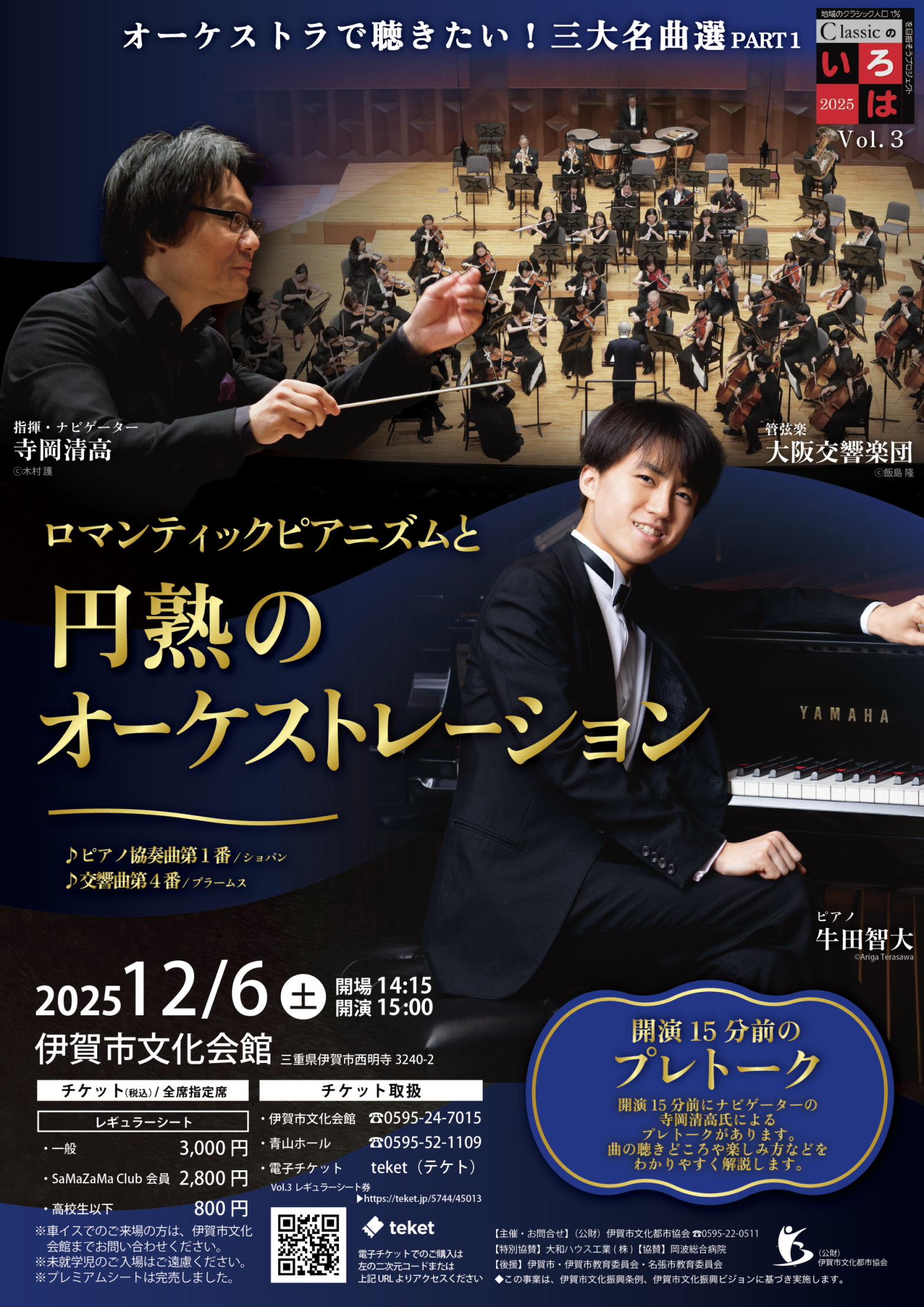 ※開演15分前にナビゲーターの寺岡氏によるプレトークがあります。曲の聴きどころや楽しみ方などをわかりやすく解説します。
