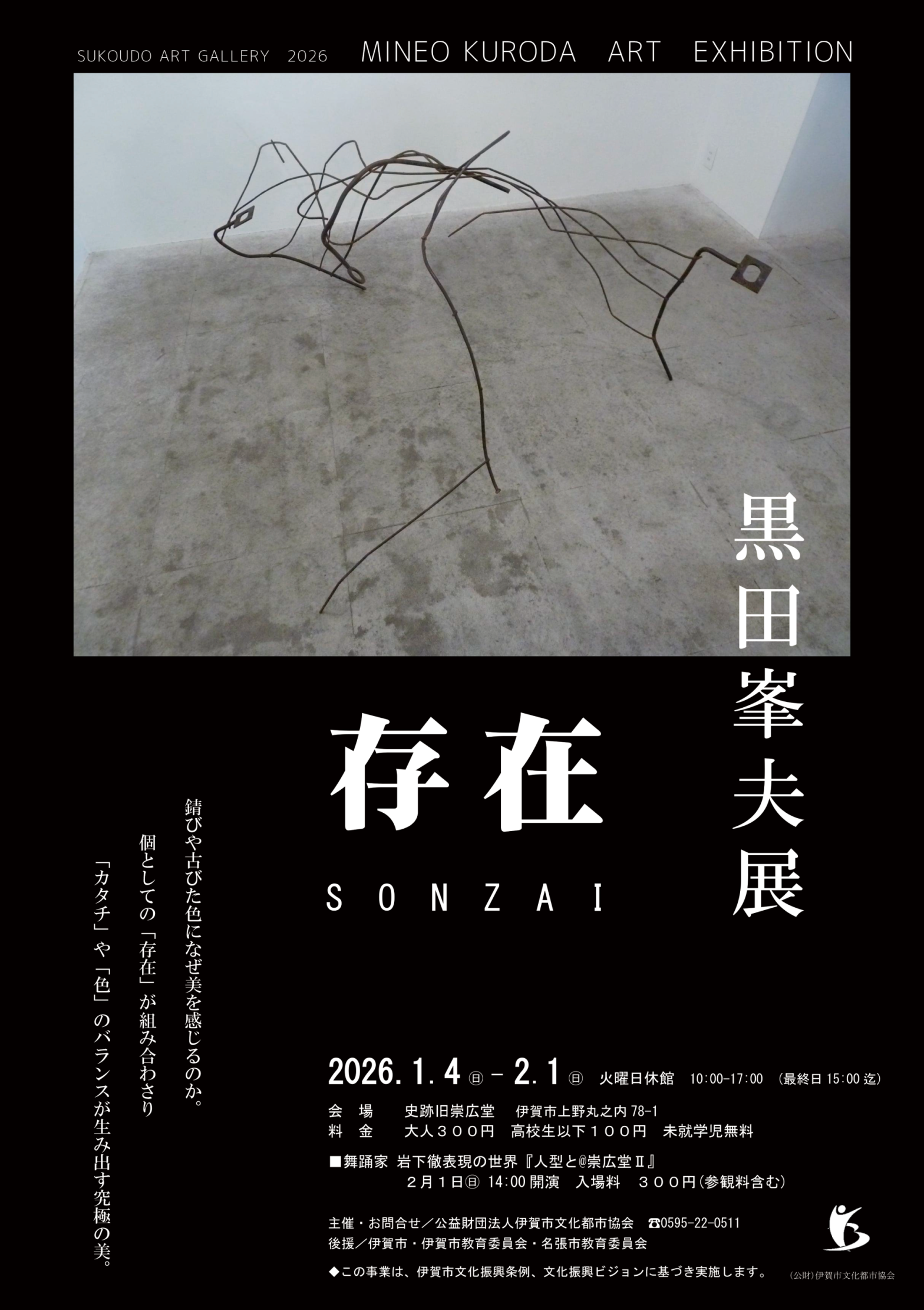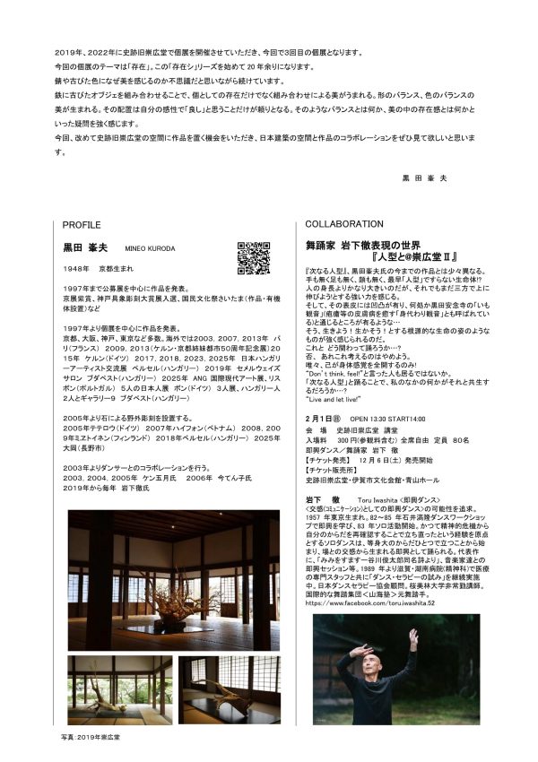 ■舞踊家 岩下徹表現の世界『人型と@崇広堂Ⅱ』 【日時】2月1日㊐ 14:00開演 入場料300円(参観料含)