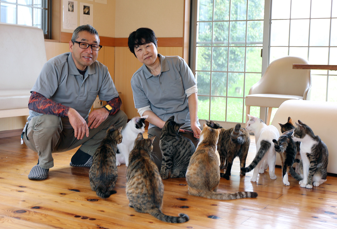 「『命を助けるためにペットを飼う』という選択肢があることを知って欲しい」と話すのは、三重県伊賀市大野木で保護猫カフェ「しあわせニャンコ」を営む、代表社員の山本薫さんとご主人の利雄さん。