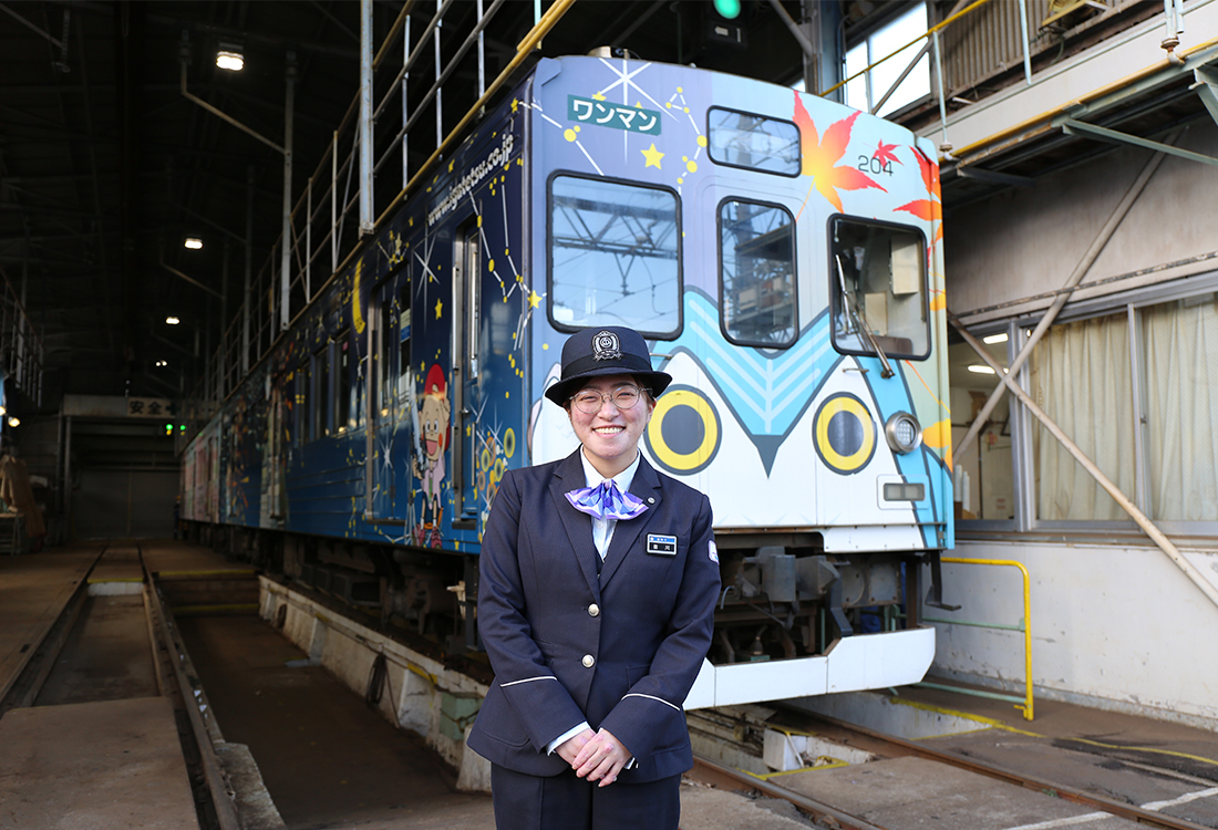 「鉄道の運転士にあこがれていたので、募集を見て迷わず応募しました」と話すのは、伊賀鉄道初の女性運転士として働く田川夏帆さん(28)。田川さんは同鉄道の自社養成運転士の第1号※1でもある。