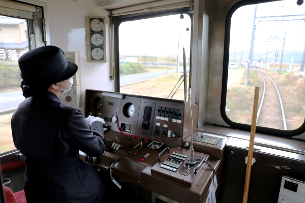 運転士になって約1年が経ち、これまで様々な事態に直面。気象条件が悪い中での運転や動物との接触といったものから、車内で具合が悪くなった乗客への対応といった、異例事態も経験した。ワンマン運転なので、車掌がおらず運転士が一人という状況の中で、伊賀鉄道指令と連絡を取り合い、指示を受けながら無事に対応してきたという。