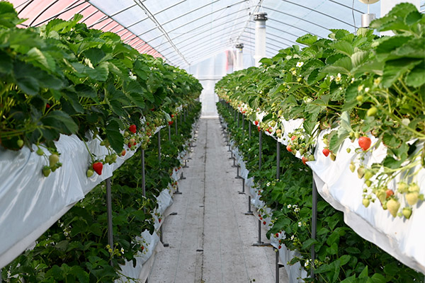 「お客様に自信を持って薦められる商品を届けたい。愛情込めて育てた自社栽培の農産物なら自信を持って薦められる。そんな思いから農業への参入を決めました」と話す松裏さん。2023年から、新事業としていちごの栽培に着手。現在、伊賀市下友生の約10アールのハウスで、5種類のいちごを栽培。ほかにもさつまいもやかぶといった、野菜も栽培している。