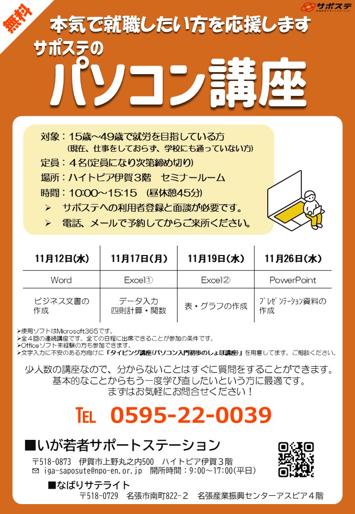 TEL:0595-22-0039(いが若者サポートステーション)