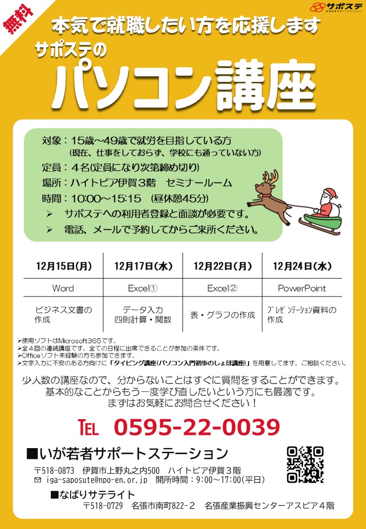 「パソコンが苦手」「基礎から復習したい」という方にぴったりです。参加費は無料です。