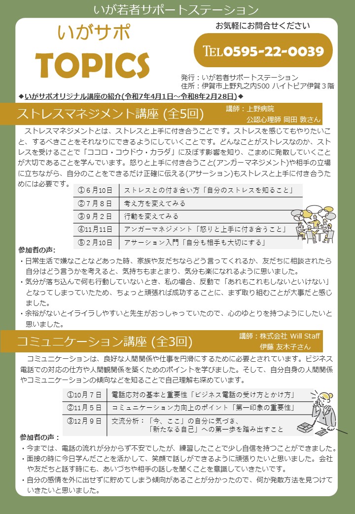 今回のTOPICSは、いがサポオリジナル講座の紹介(令和7年4月1日~令和8年2月28日)です。
