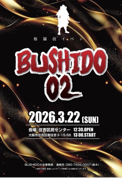 3月22日大阪で行われるプロ興業BUSHIDO 02にプロルールで参戦します❗️